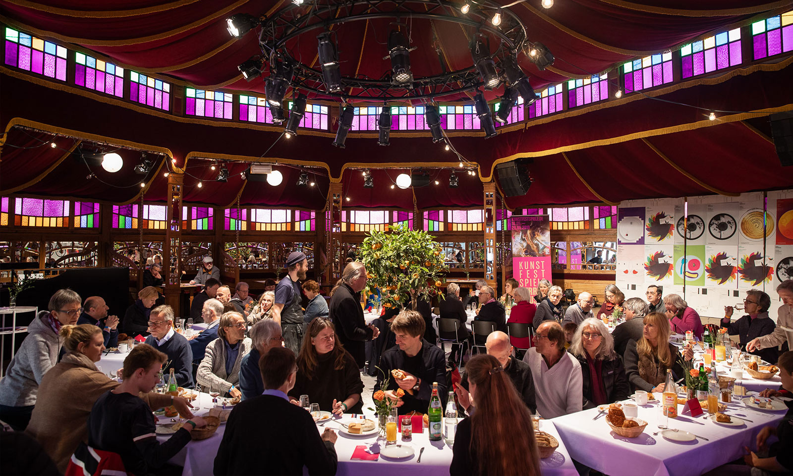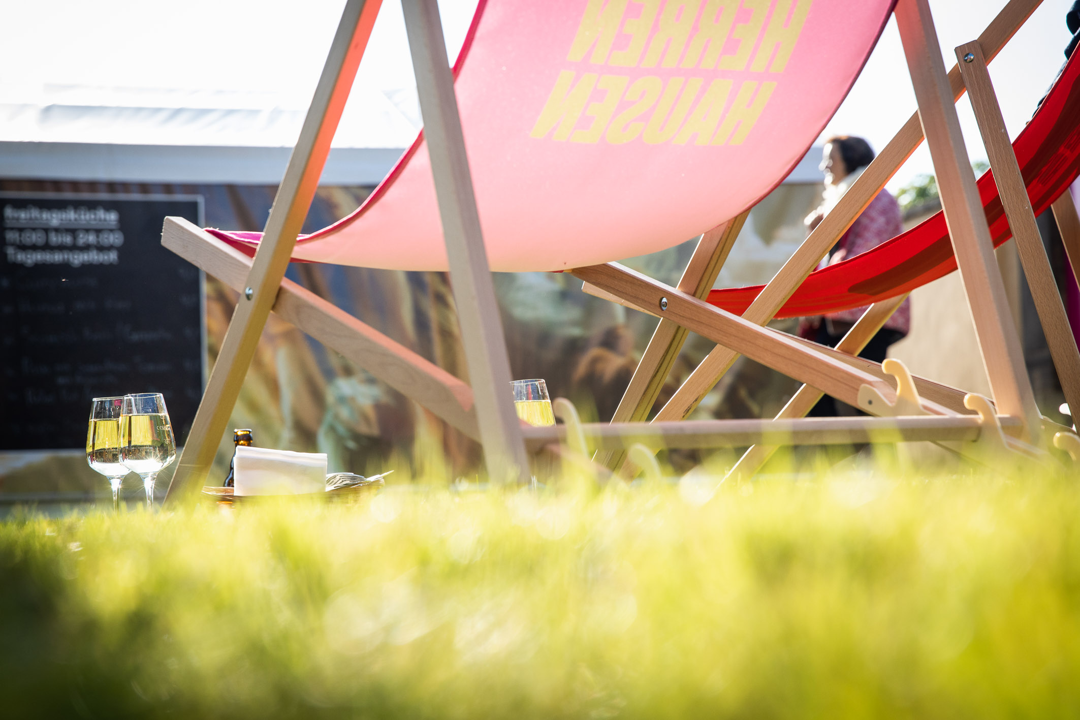 Das Festivalzentrum als offenes Zelt lockte mit kulinarischem Angebot der freitagsküche und ausreichend Platz für Abstandsgebote, um inspirierende Gespräche vor, zwischen oder nach den Vorstellungen zu führen oder Entspannung bei Kaffee und Kuchen zu finden.