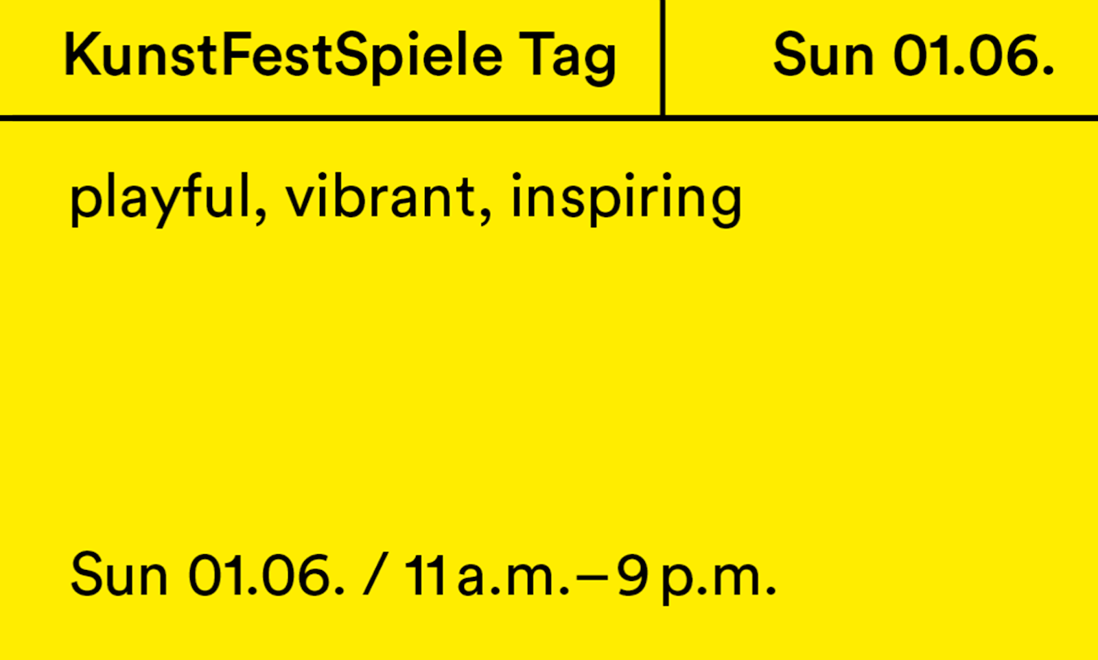 KunstFestSpiele Tag Sun 01.06 / 11 a.m. – 9 p.m. |